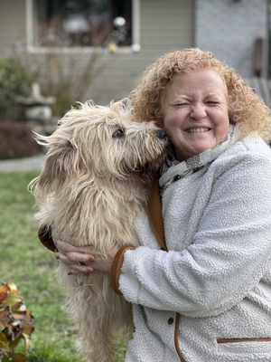 Stella is only 10 pounds, but all 10 pounds make for a fierce little fighter. She is Alpha; she did not want anyone coming into the house and tried to bite their ankles every time. She was going to protect me at all costs. She used to get a glazed look in her eyes and she would go “mad”. We hired trainers and worked tirelessly with her to alleviate her fears. It’s been two years now and we are STARTING to see light at the end of the tunnel.