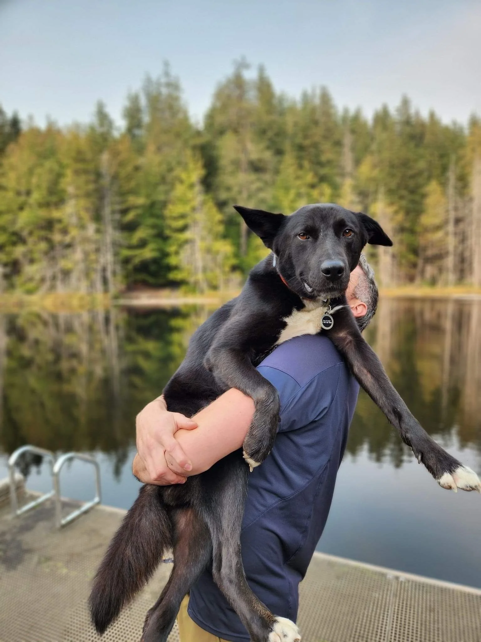 I finally showed the list of dogs to my partner, and as I scrolled through the list he pointed immediately: “that one!” And shortly after I was on a FaceTime interview with Sue and we brought our ball of fur home! He’s been nothing short of incredible. He’s the most resilient dog. He’s gone through so much in his little life. We learned he’s barely two at the vet! He’s learned a new language, new commands, went through a training program, rode in a few boats this summer, and a bit of swimming! He has so much energy for this new world and gets us out hiking all the time! We’re just starting him on off leash training and he’s finally able to chase all the squirrels his little heart desires.